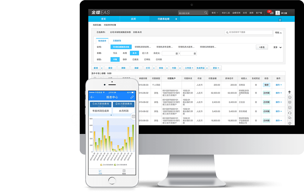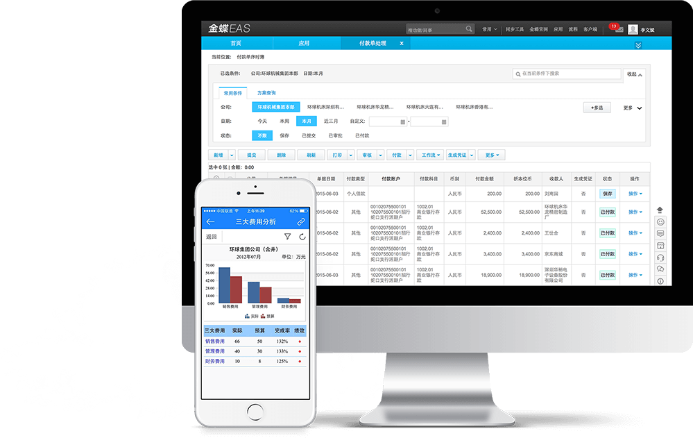 金蝶EAS为集团企业提供全面集团管控方案,助力集团企业数字化转型,实现企业数据自由共享。以财务共享、数字营销、智能制造为主要领域,全面覆盖预算、管理会计、资金管理、集团供应链、销售电商、采购电商、多工厂制造等管理领域。同时,金蝶自主创新了最适合中国企业管理特质的BOS底层开放平台,满足了集团企业随需应变的创新及发展等深层次需求。